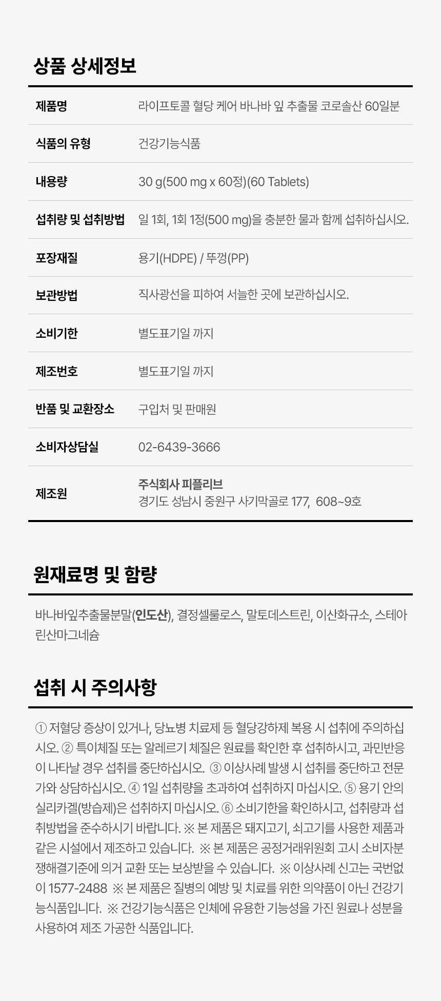 원료명 및 함량