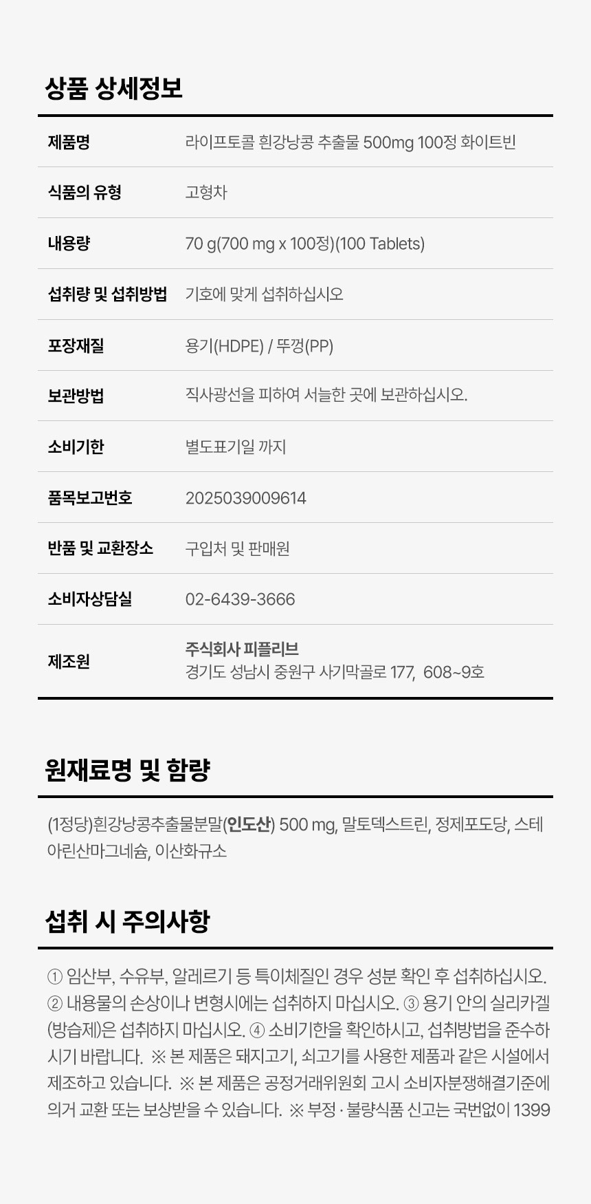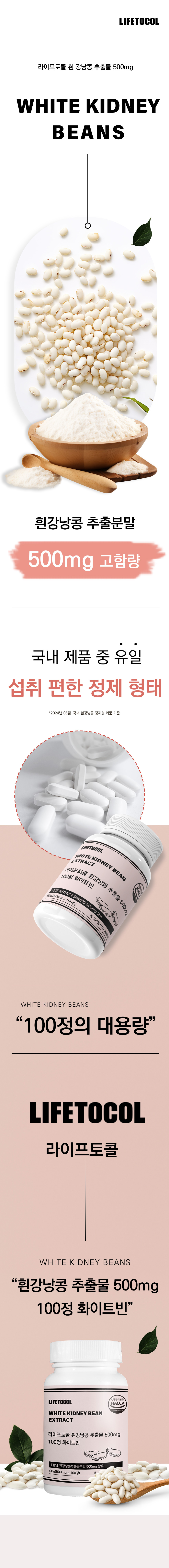 라이프토콜 흰강낭콩 추출물 500mg 100정 화이트빈